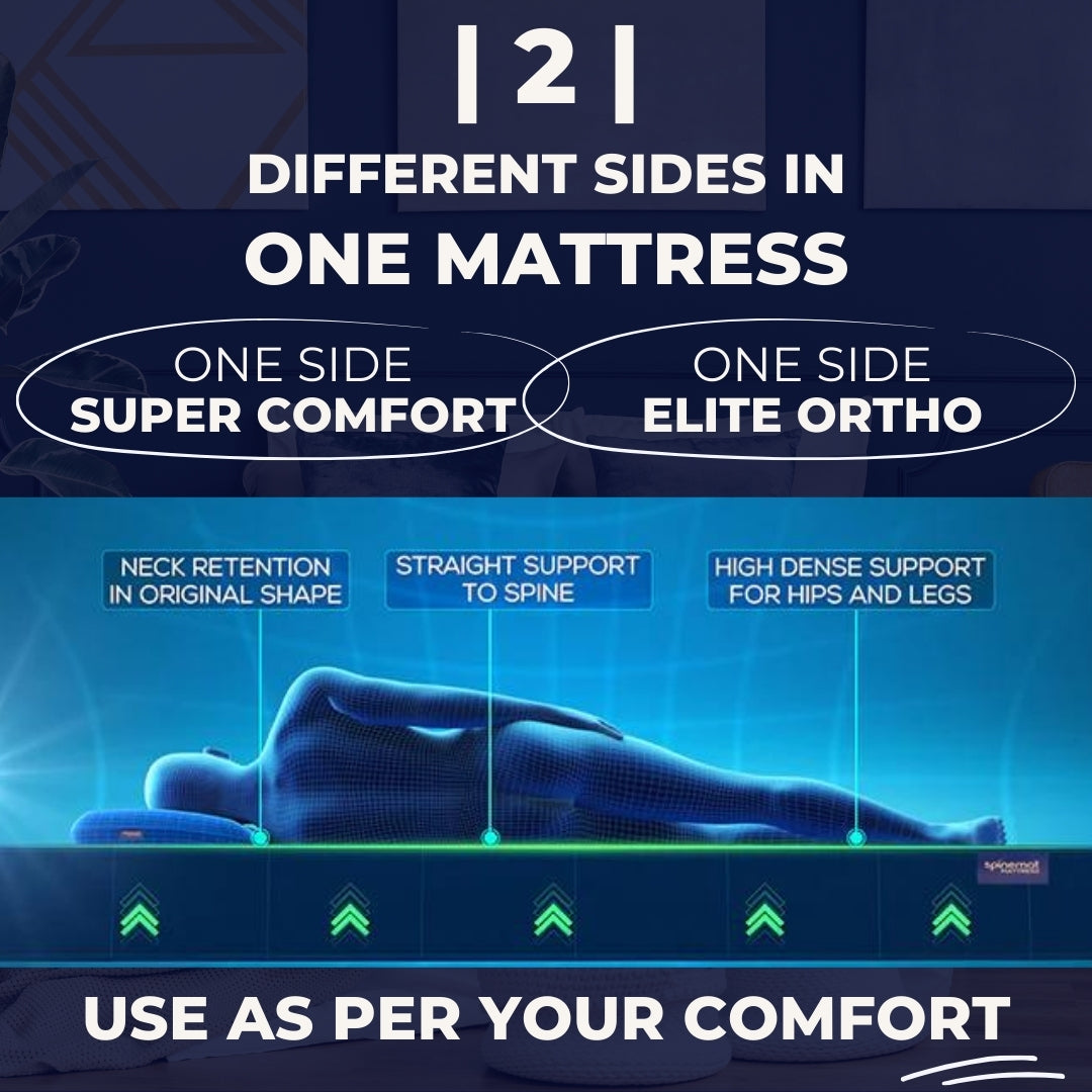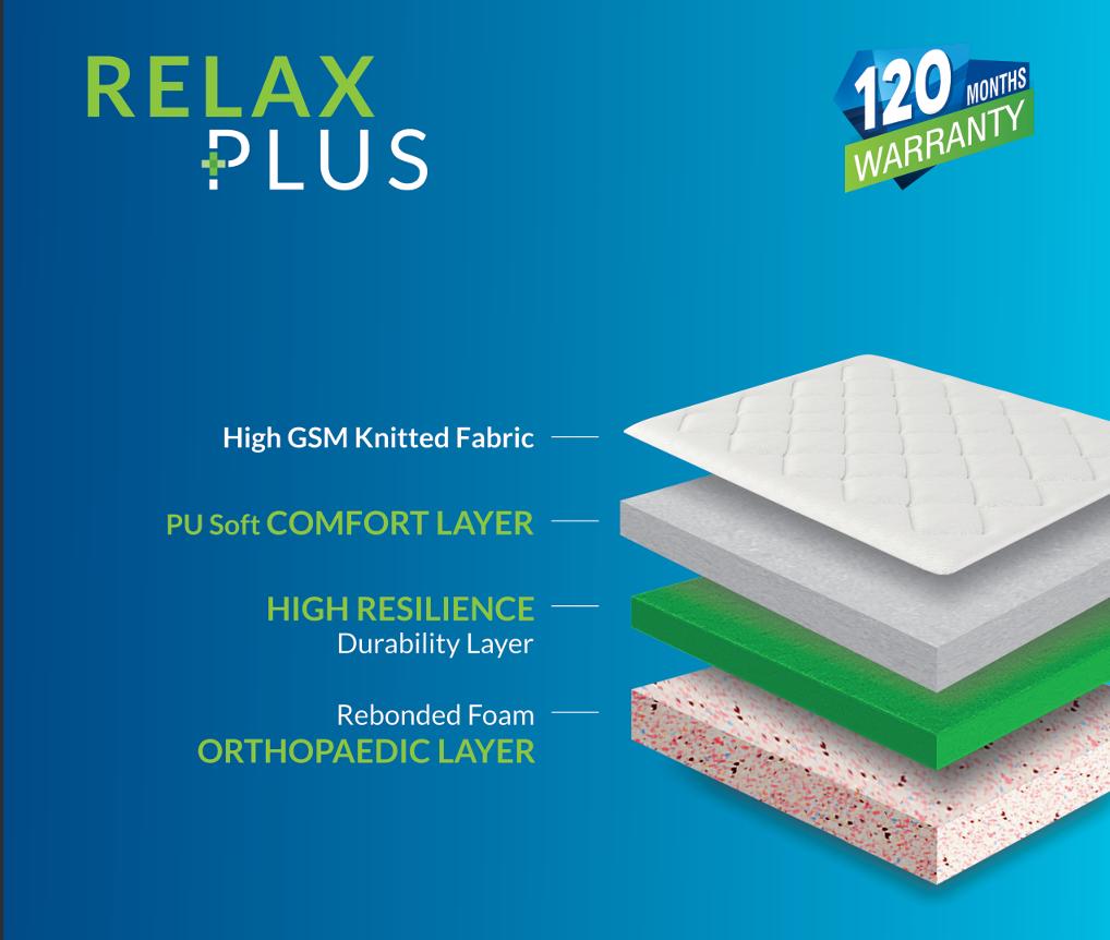 The Relax Plus mattress offers a perfect balance of comfort and orthopedic support. Its unique combination of hard and soft layers ensures superior back alignment while providing plush comfort for a restful night’s sleep. Designed to cater to those seeking both firmness and cushioning, Relax Plus promotes spinal health without compromising on luxury. Ideal for users who desire durable support paired with gentle softness, this mattress delivers an elevated sleeping experience with advanced engineering.
